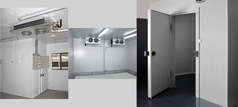 Każde pomieszczenie chłodnicze jest wyposażone w odpowiedni agregat typu monoblok (mocowany na dachu komory) lub split (lokalizowany na zewnątrz budynku), odpowiedzialny za utrzymanie wybranej temperatury. Może ono posiadać również wbudowane oświetlenie, antypoślizgową ryflowaną podłogę, kompletną zabudowę półkową czy kurtynę paskową lub powietrzną, zmniejszającą straty ciepła. W komorach, w których temperatura wynosi poniżej 0ºC, stosowane jest dodatkowe ogrzewanie posadzki oraz zawory ciśnieniowe odpowiedzialne za wyrównywanie ciśnienia pomiędzy pomieszczeniem a jego otoczeniem.